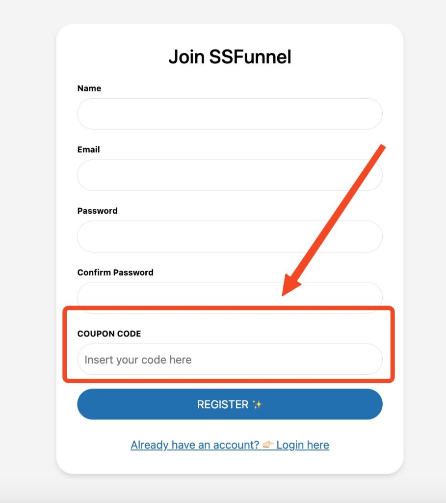 Please check your email for the download link and your exclusive coupon code. Use this code at app.ssfunnel.com to activate your lifetime deal with SSFunnel. This step is essential to kickstart your journey with our powerful plugin.